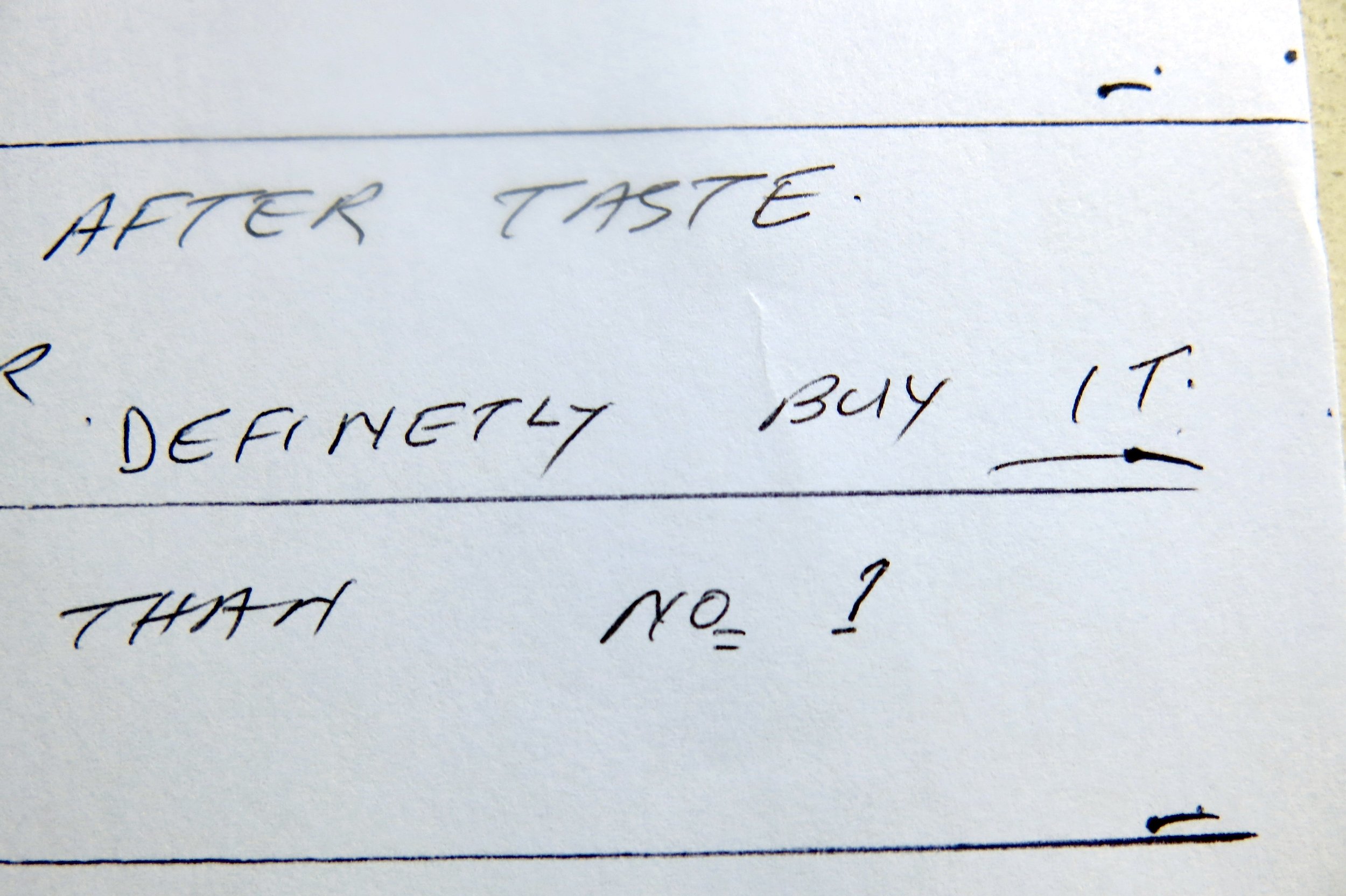 Photographic evidence of my mother-in-law’s tasting notes.